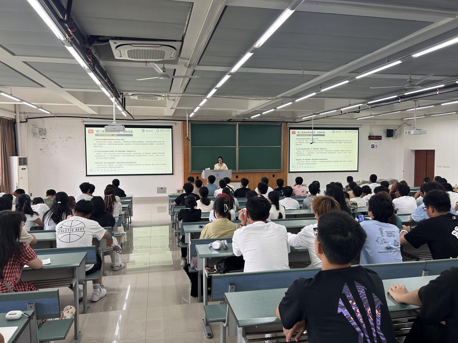 在第二课堂方面,辅导员马娟在宣讲中介绍,西南交通大学第二课堂围绕学生成长需求,精心划分实践创新、志愿服务、文化浸润、技能提升四大特色模块,既能呼应第一课堂的专业知识,又能填补课外能力培养的空白,满足不同兴趣方向同学的发展需求。学校为第二课堂提供全方位资源支撑,让学生在真实场景中积累经验,切实降低参与门槛,助力大家大胆探索。此外,她还为同学们详细讲解了第二课堂的参与路径。