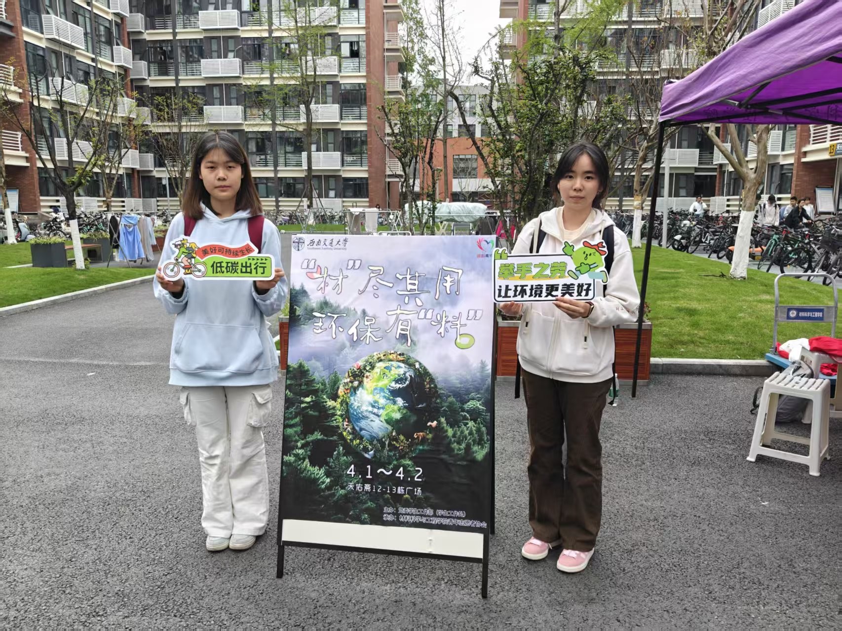 为深入贯彻绿色发展理念,增强大学生环保意识,营造文明、低碳、和谐的校园环境,进一步发挥“一站式”学生社区贴近学生、服务学生的育人优势,4月3日-4月4日,由党委学生工作部主办、材料科学与工程学院青年志愿者协会承办的以“‘材’尽其用·环保有‘料’”为主题的“一站式”学生社区环保周系列活动顺利举办。活动落地学生宿舍园区,通过趣味互动、知识科普、打卡留念等多元形式,让环保理念深入人心,吸引了全校众多同学积极参与。