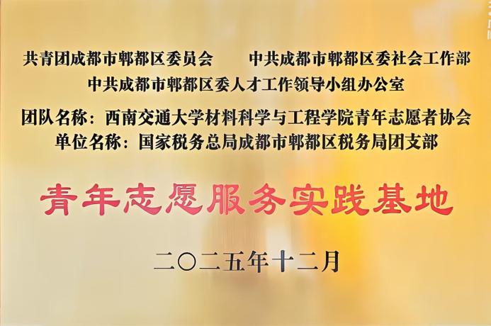 为深入贯彻落实习近平总书记关于教育的重要论述,落实立德树人根本任务,深入践行学校“融育共通”人才培养理念,材料科学与工程学院积极构建校地协同劳动育人平台。12月4日下午,成都市郫都区首届青年志愿服务项目大赛决赛在成都工业学院举行。在社区与高校志愿服务团队结对仪式上,西南交通大学材料科学与工程学院青年志愿者协会与国家税务总局成都市郫都区税务局团支部共同揭牌“青年志愿服务实践基地”。