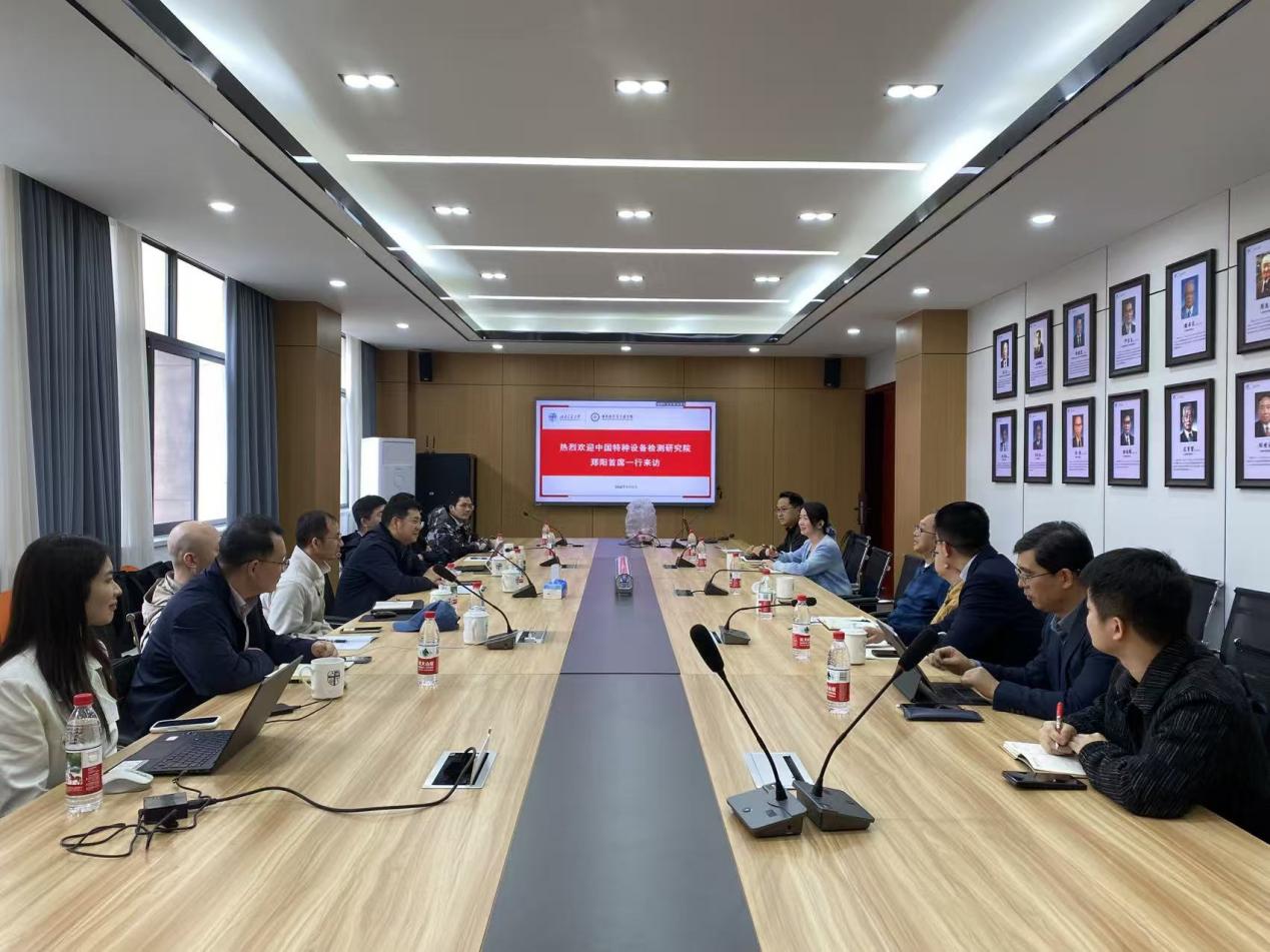 陈辉院长对郑阳首席一行表示热烈欢迎。他指出,中国特检院作为我国特种设备安全保障领域的重要科研机构,在行业标准制定、核心检测技术研发、重大工程安全评价等方面具有权威影响力。学院高度重视与行业领军科研机构的战略合作,双方在保障轨道交通及重大工业装备安全稳定运行方面发展目标高度契合。陈辉表示,希望以双方共同承担的国家科技重大专项为牵引,进一步健全常态化协同机制,聚焦卓越工程人才培养,全方位深化产学研融合,携手服务国家重大战略需求。随后,学院副院长李琦介绍了学院发展概况,重点汇报了学院面向轨道交通等关键产业领域的技术攻关方向与成果转化布局。